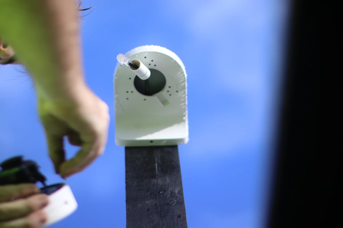To counter vandalism and rubbish bin abuse on the street, we installed a vandal-resistant dome camera mounted on a raised support overlooking the street. A 4G modem was used to work around the the costs of drilling a hardwired connection through thick concrete walls.