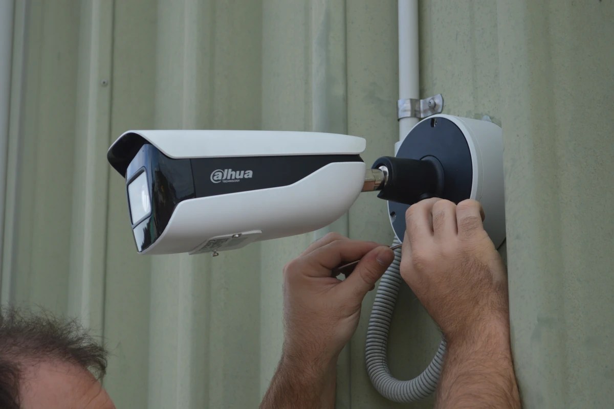 Installing a narrow angle 8MP bullet camera for very detailed license plate footage of all vehicles incoming through the gate 25-30m away from the building. Significantly saving costs compared to running underground cable and installing a standard camera on a pole closer to the gate.
